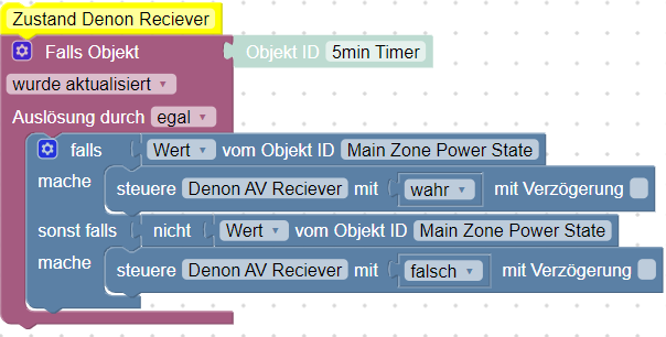 Prüft ob der Denon Receiver An oder Aus ist → wird benutzt um die Deko Beleuchtung nur Auszuschalten wenn wir nicht mehr auf sind.