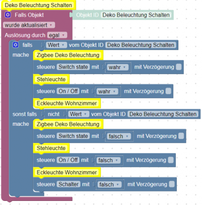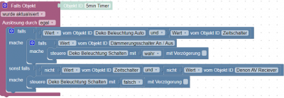 Die Skripte Deko Beleuchtung An/Aus und Deko Beleuchtung Auto benutzen die anderen Datenpunkte um zu